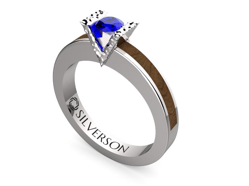 Anillo de pedida de madera y plata con piedra modelo Oshi